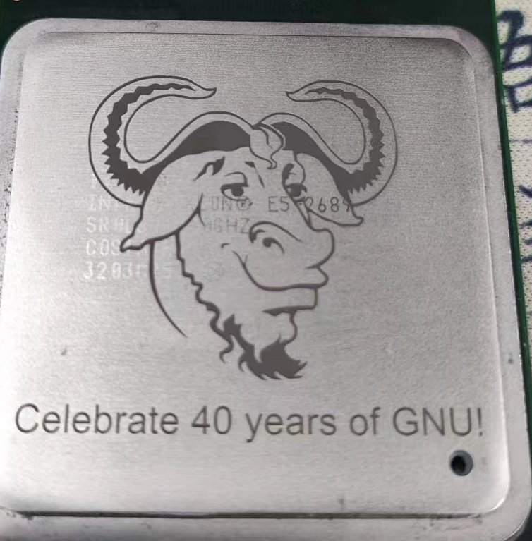 所有内核均使用一颗 雕刻了GNU 40周年标志的 e5 2689 编译完成。