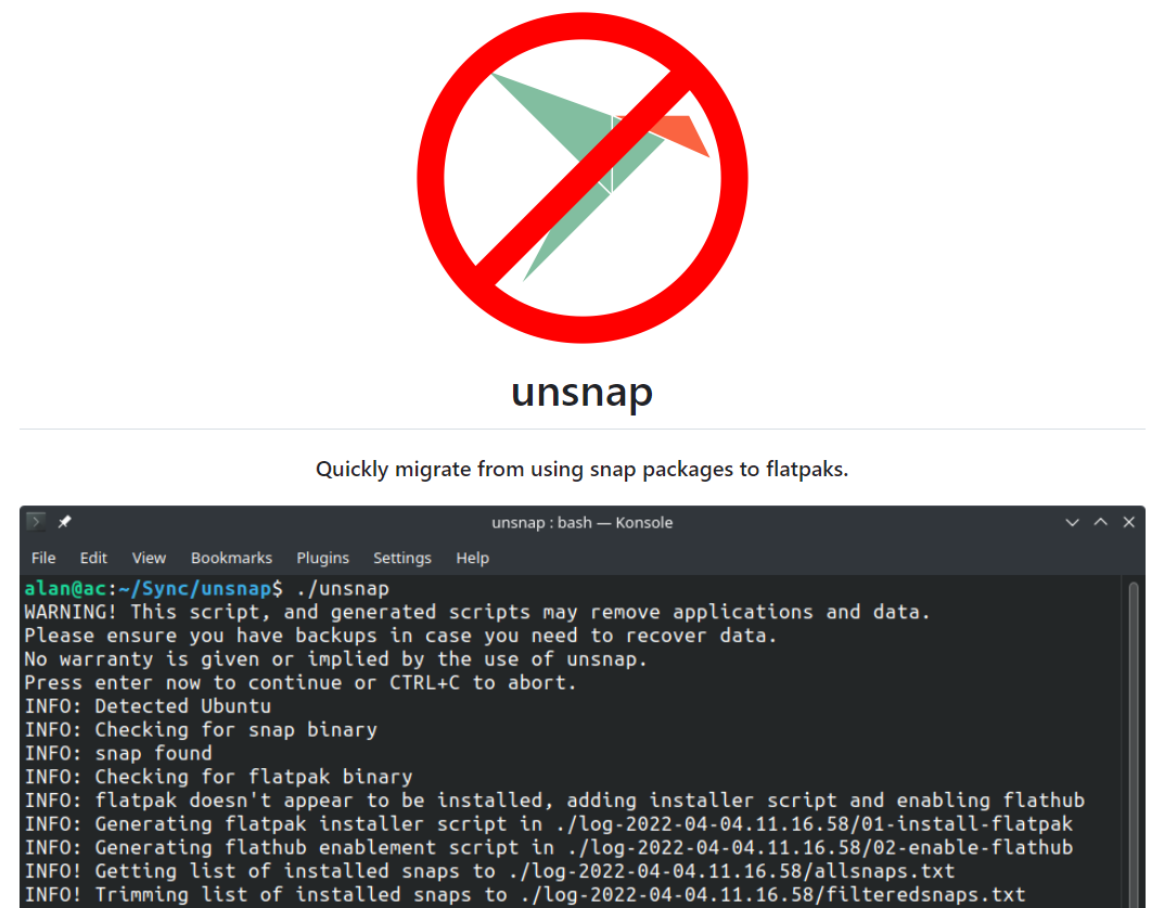 近日,Alan Pope 开发了一个名为 unsnap 的脚本,如果一个 Snap 软件包存在对应的 Flatpak 包,那么它将会自动用 Flatpak 包替换 Snap 包。