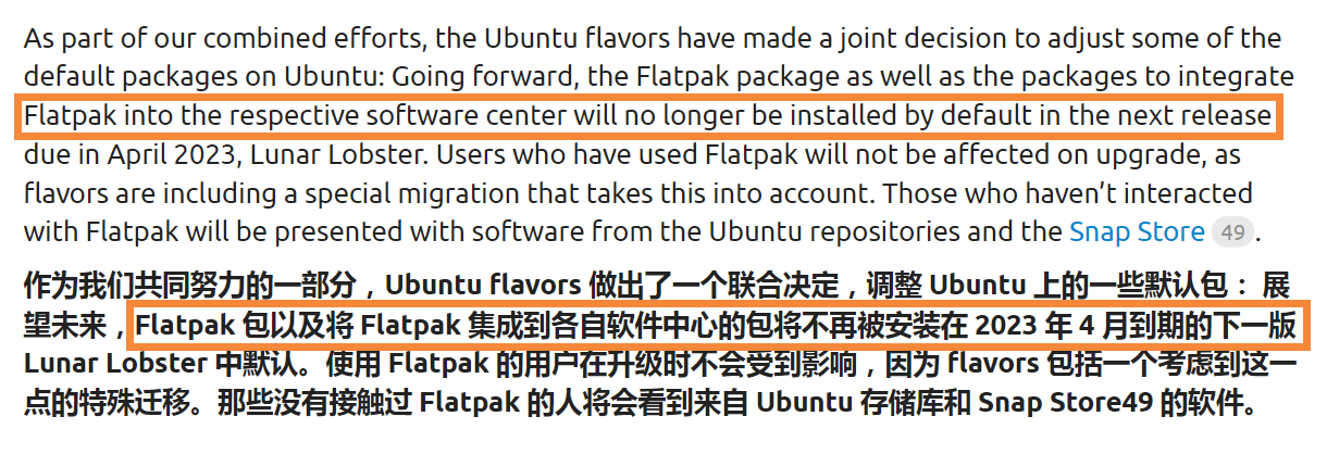 Flatpak 软件包以及将 Flatpak 整合到各自软件中心的包,在 2023 年 4 月发布的下一个版本 (Lunar Lobster) 中将不再默认安装。