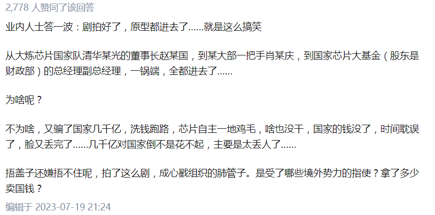 最近优酷的独播新剧《我的中国芯》创造了新的“艺术形式”:爱情+芯片,让无数人惊叹小刀划屁股——开了眼了。