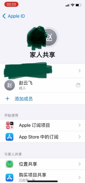 接下来,盗号者并不会直接用 Apple ID 下单支付,而是会创建一个家庭共享,加入另一个账号,由这个账号购买 App 中的虚拟商品