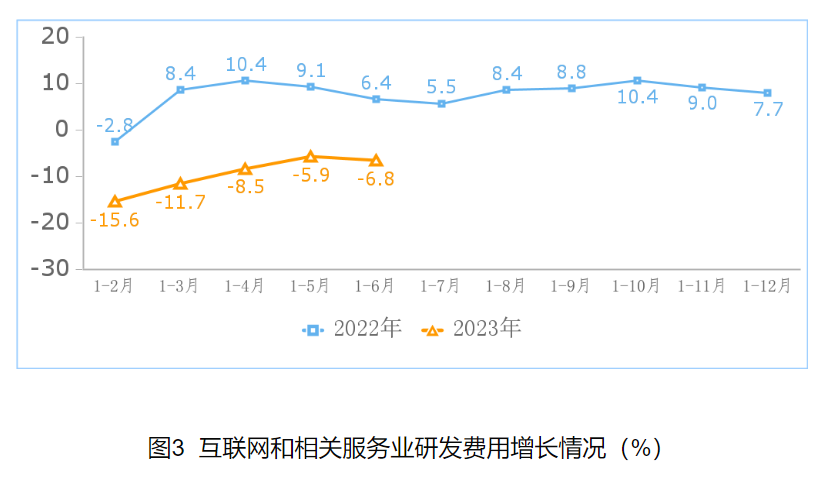 研发经费持续下滑。上半年,我国规模以上互联网企业共投入研发经费305.4亿元,同比下降6.8%。