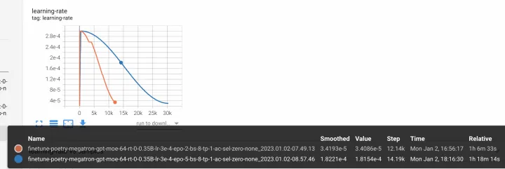 任务资源配置建议使用单机八卡A100来训练1.3B以上的GPT-MoE模型。