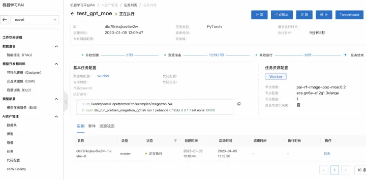 接下来我们通过PAI-DLC产品来演示如何执行GPT-MoE的基础预训练。