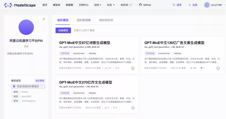 在线体验地址:https://www.modelscope.cn/models/PAI/nlp_gpt3_text-generation_1.3B_MoE-32/summary