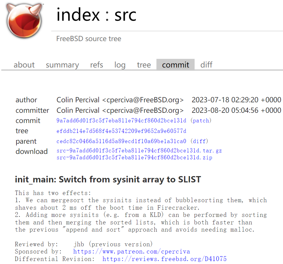 FreeBSD 维护者 Colin Percival 发帖称,他们已经为 SYSINIT 采用合并排序 (mergesort) 来取代冒泡排序 (bubblesort)。