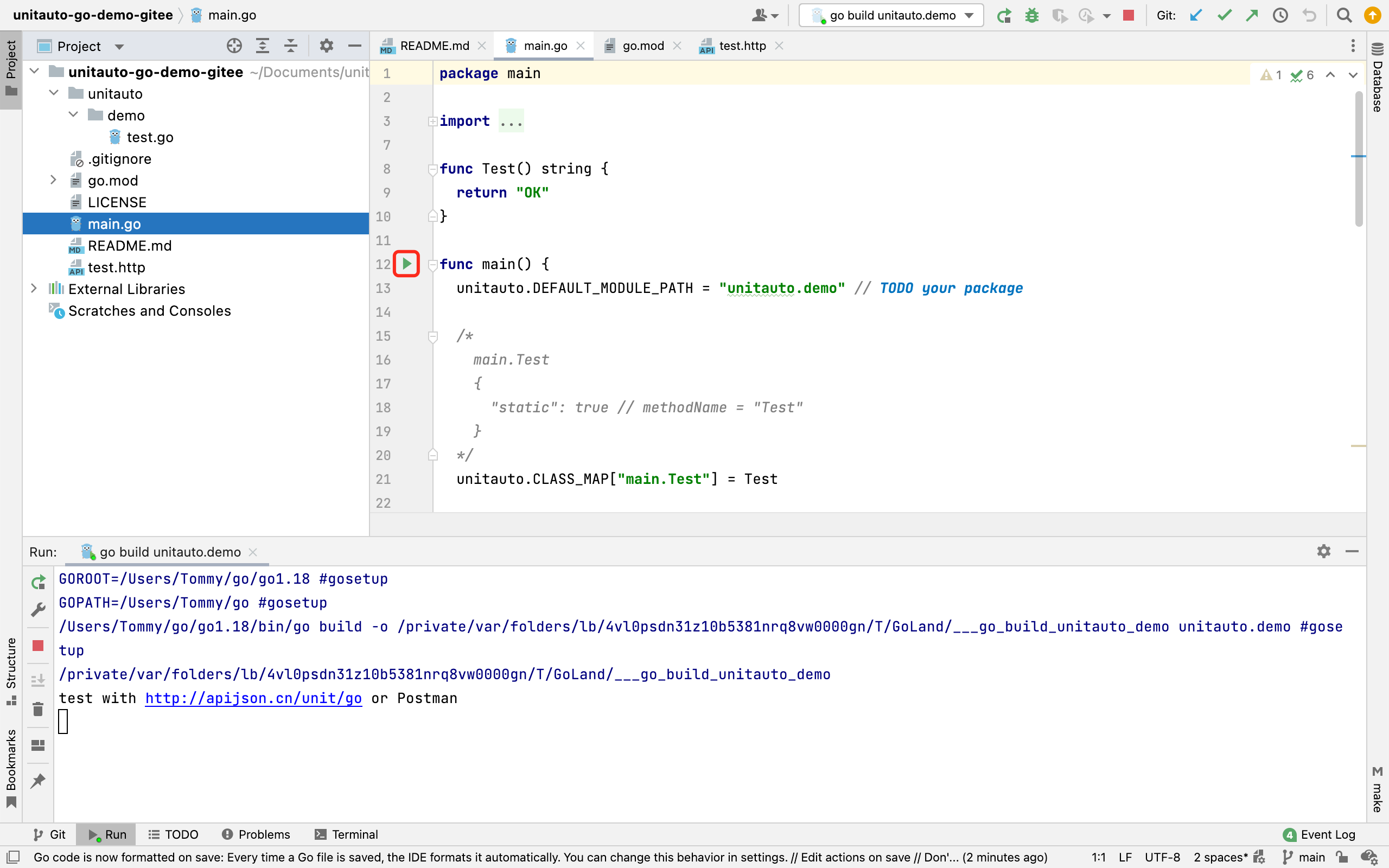 首个 Go 零代码单元测试 unitauto-go demo 开源,自带 .http 本地测试