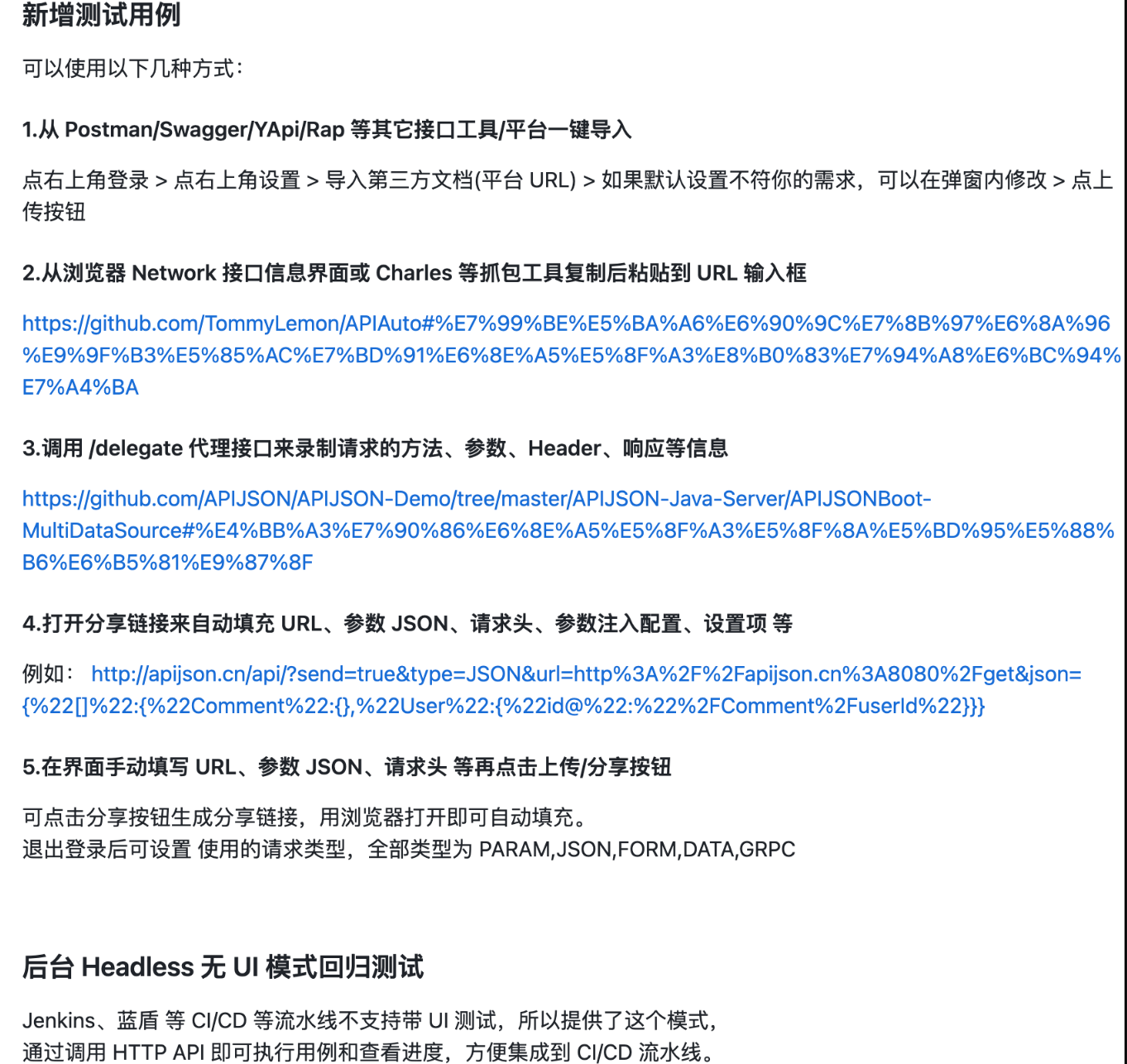 新增关于新增测试用例 5 种方式的说明文档;