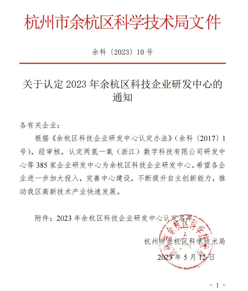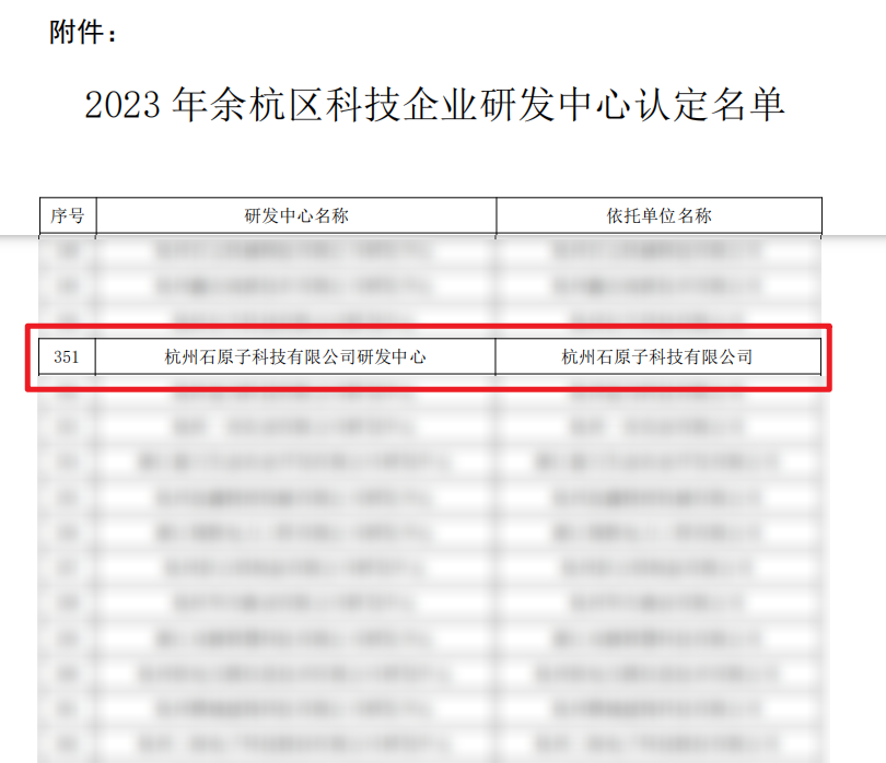 近日,杭州市余杭区科学技术局公布关于2023年余杭区科技企业研发中心的认定名单(余科[2023]10号)。其中,杭州石原子科技有限公司(以下简称“石原子”)被认定为余杭区科技企业研究开发中心。