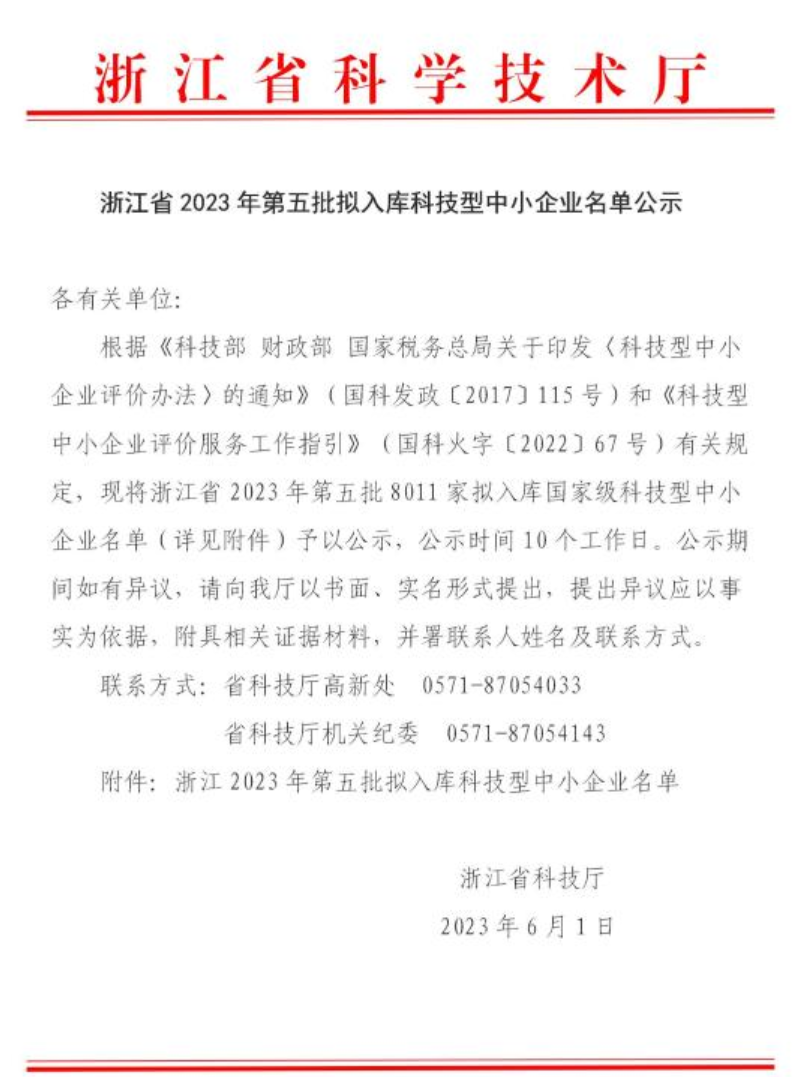 近日,浙江省科学技术厅发布了关于2023年第五批入库科技型中小企业的公告,根据《科技型中小企业评价办法》(国科发政[2017]115号)和《科技型中小企业评价服务工作指引》(国科火字[2022]67号)要求,经企业自主申请和评价工作机构审核,杭州石原子科技有限公司(以下简称“石原子科技”)成功入库浙江省2023年第五批国家级科技型中小企业,已在全国科技型中小企业信息服务平台及浙江省科学技术厅门户网站同步公示和公告。目前,石原子科技已经连续两年获评为国家级科技型中小企业。