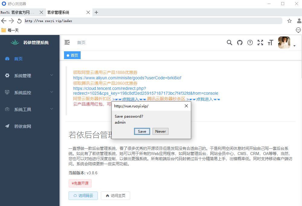 3、系统演示:当客户来访看案例,通过浏览器自动完成演示系统自动登录。