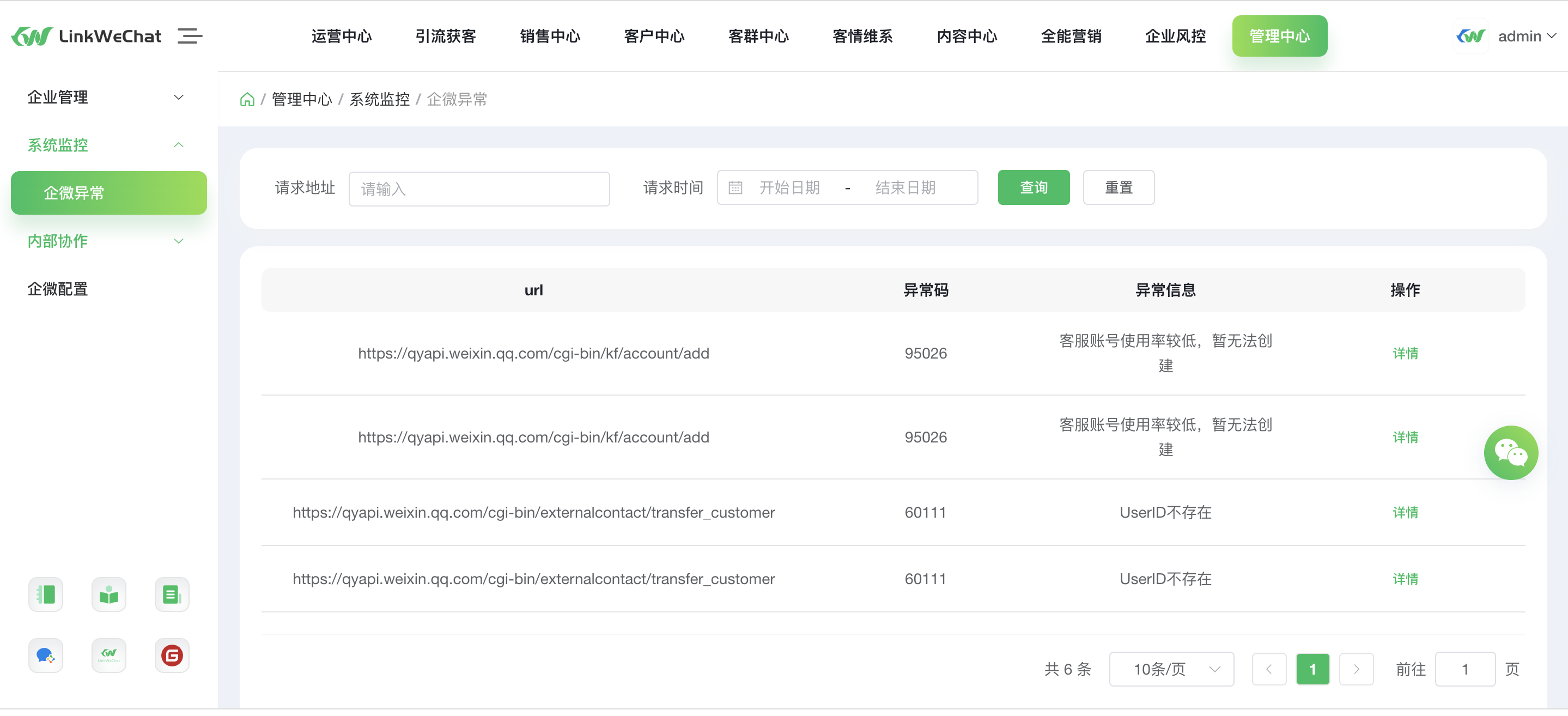 2.增加企微异常管理记录,便于问题查询。