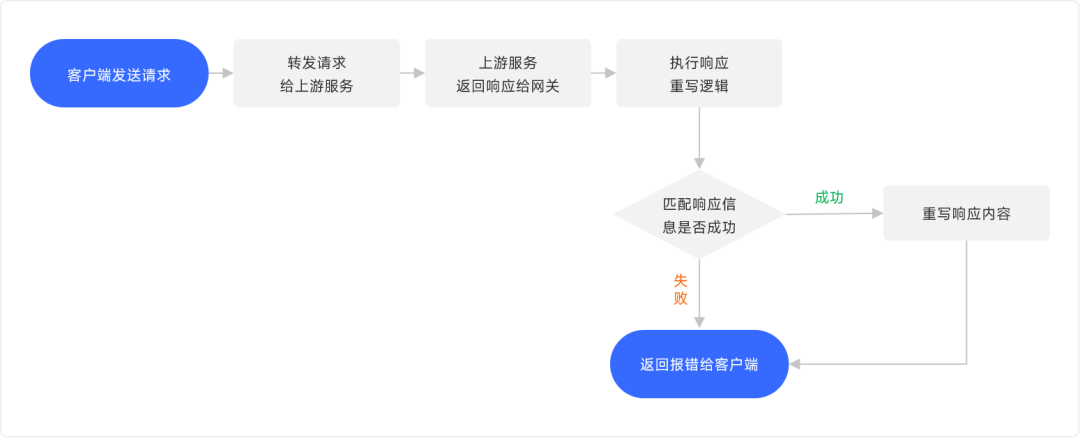 当匹配响应状态码、响应体、响应头部后,重写响应信息。不仅支持对上游服务返回的响应进行重写,而且支持对插件报错设置的默认响应进行重写。