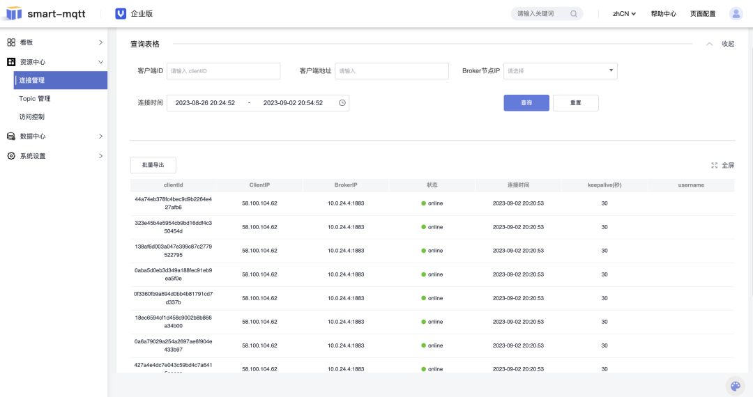 新增客户端连接管理页面。