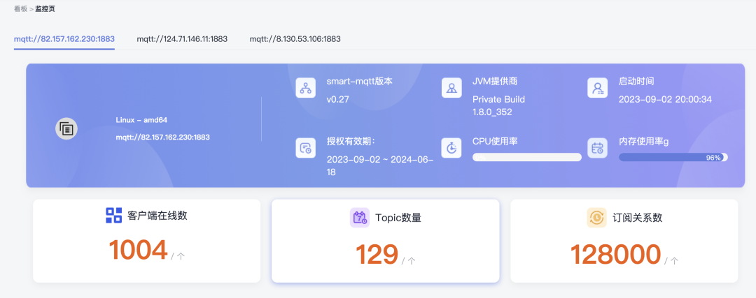 企业版 License 认证。授权过期将无法启动服务,但并不会因授权过期影响正在运行的 Broker。