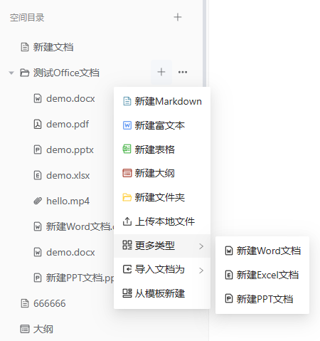 新增Office原始文档(Word、PPT、Excel)的上传或新建