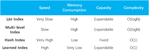 不同类型索引结构对比: