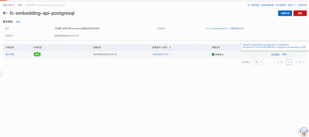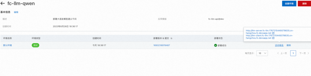 服务部署成功之后会返回两个链接。