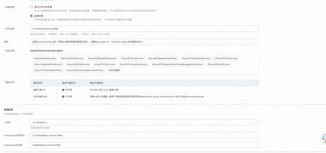 本篇教程先来分享一下第一个部分,如何通过函数计算快速部署 AIGC 相关模型服务包括 LLM 模型和 Embedding(Bert) 模型。