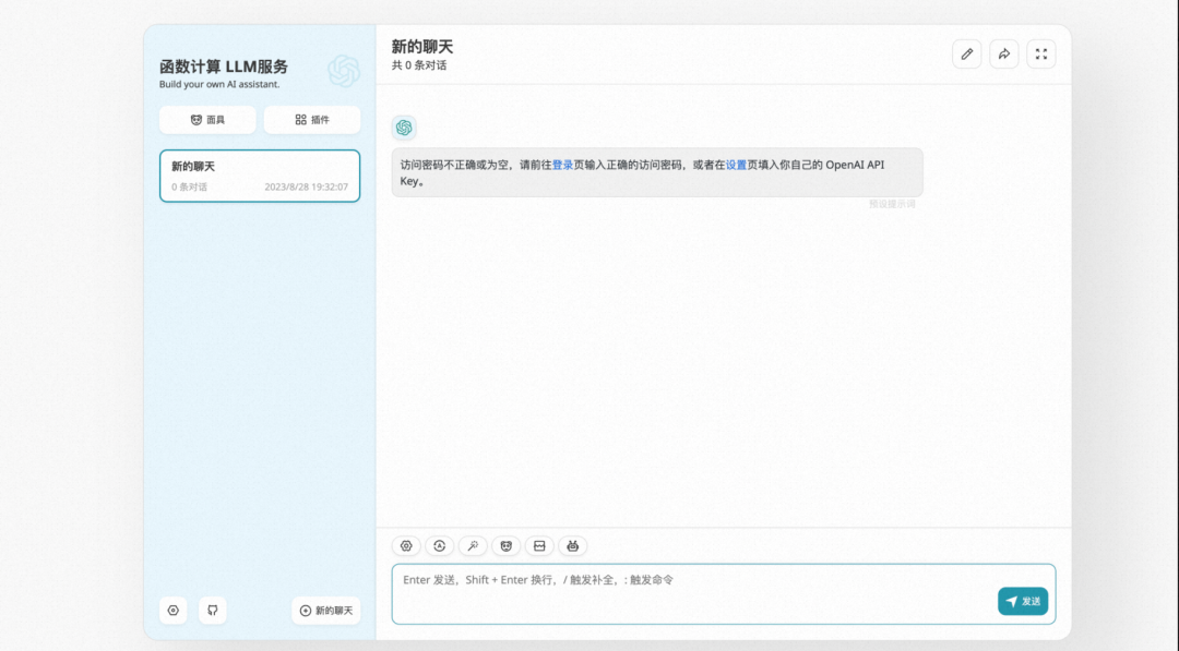 - llm-client 则是访问客户端,访问客户端需要您输入前面填写的客户端私有密码,填写好之后就可以测试使用了。
