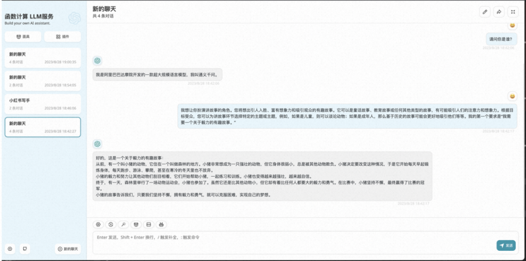 使用阿里云函数计算部署开源大模型应用,提供兼容 openai 规范的接口和 ChatGPT-Next-Web 客户端。