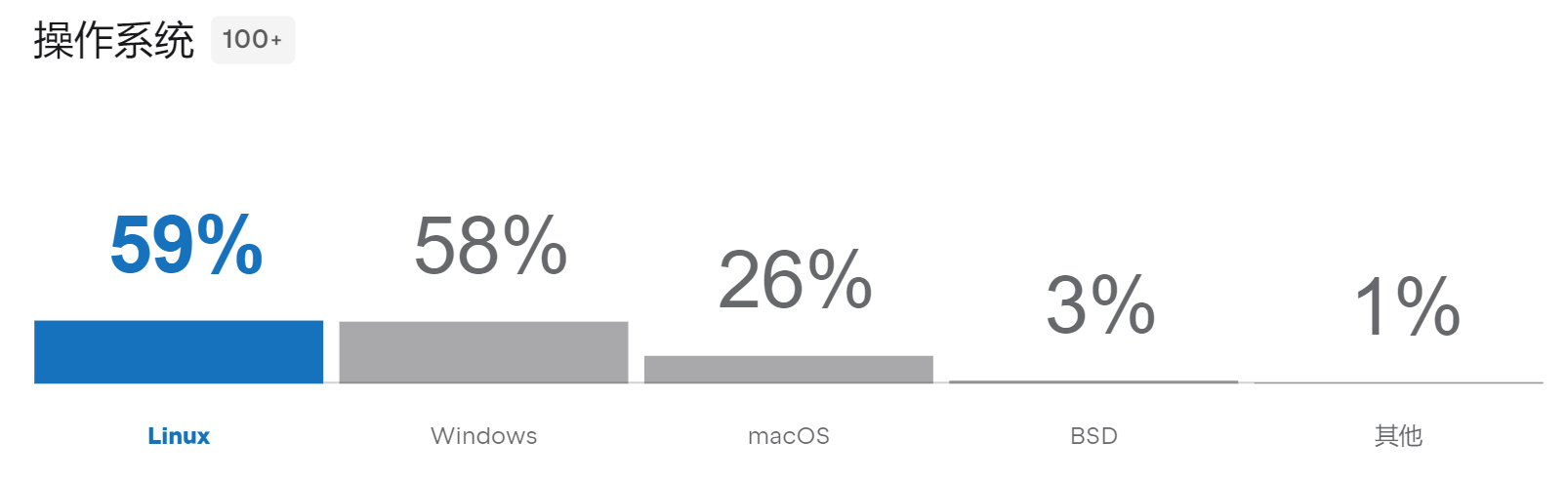 与去年相比,macOS 和 Windows 的受欢迎程度几乎保持不变,而 Linux 的使用率下降了 4 个百分点。
