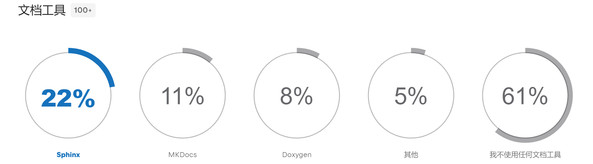 39% 的 Python 使用者使用文档工具,首选 Sphinx,与去年持平。