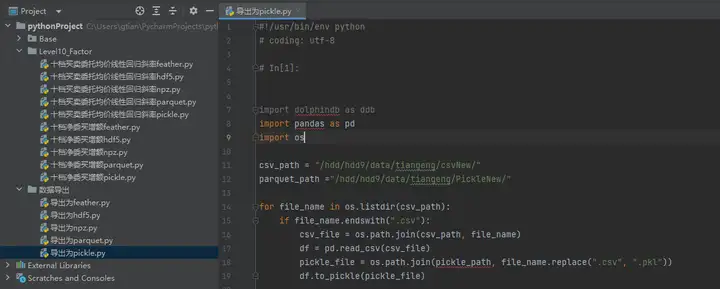 - 在 Python 中运行每个文件将导出的 csv 格式数据转换为对应类型的数据保存到指定路径(以Pickle为例)
