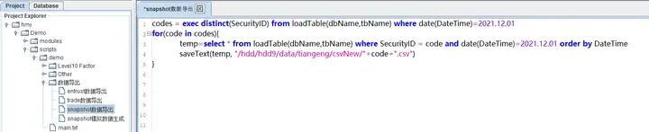 - 执行截图中的文件 DolphinDB 中的数据导出为 csv 格式文件