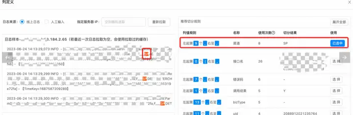 2. 业务错误码报警。监控平台能够自定义配置所需监控错误码,其来源于日志当中有一些信息,可以用来帮助我们判断是否需要关心这种日志。在进行数据采集时,可以自定义所需要关注的日志数据,并配置白名单值,如图6所示,之后可以选中其在产出日志所在位置,利用监控自动进行数据获取,如图7所示。
