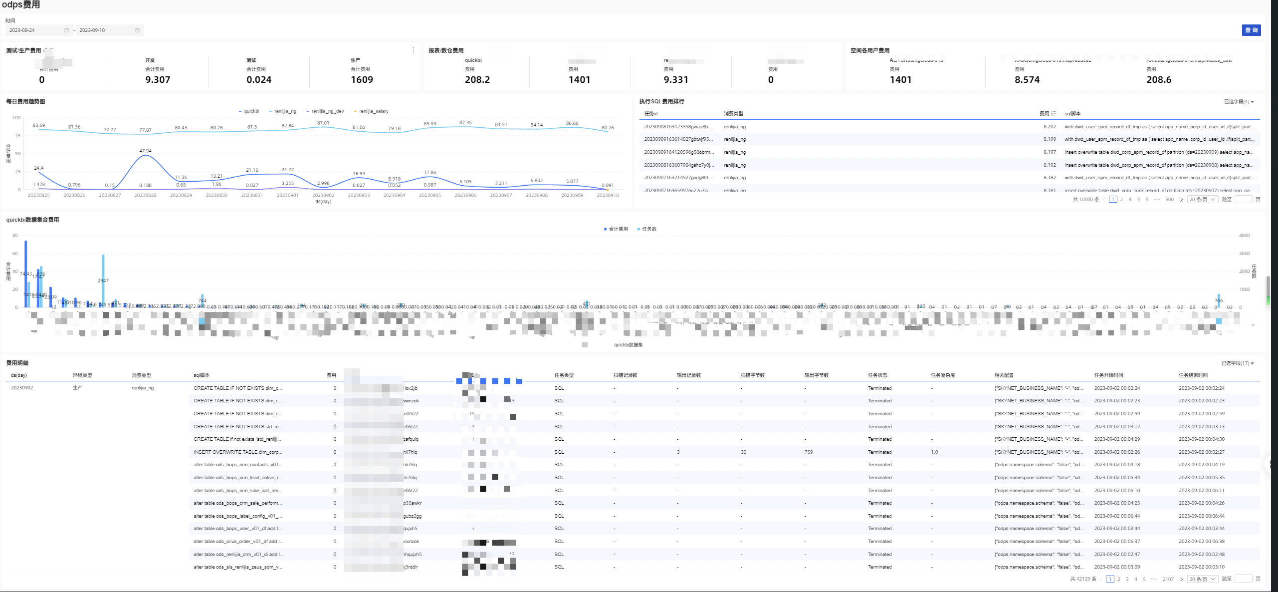 因为公司是按量付费的MaxCompute,所有我们主要关心的是成本问题和报表的访问情况。对此我们主要从环境、数据集、用户等维度进行分析。