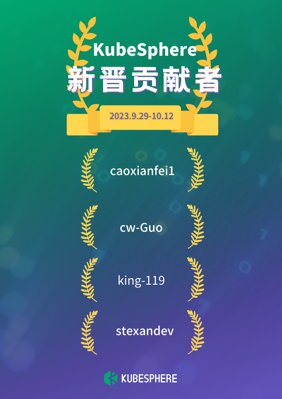 两周内共有 4 位新晋 KubeSphere Contributor,感谢各位对 KubeSphere 社区的贡献!