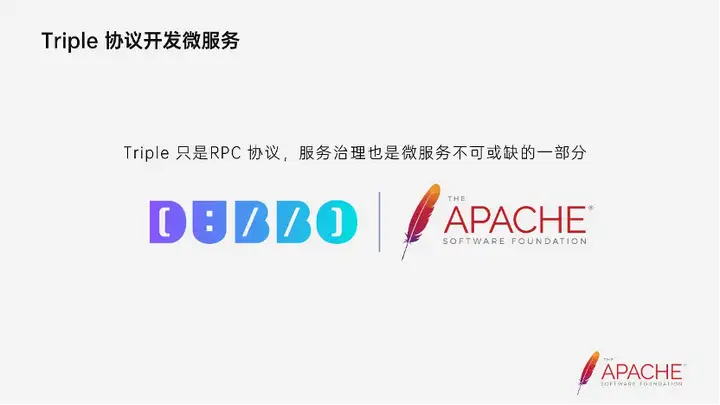 现在我们有了 Triple 协议,但如果这个协议没有承载方也是行不通的。因此我们还得有一个框架,有一些服务治理才是我们的微服务。所以服务治理也是微服务中不可或缺的一部分。