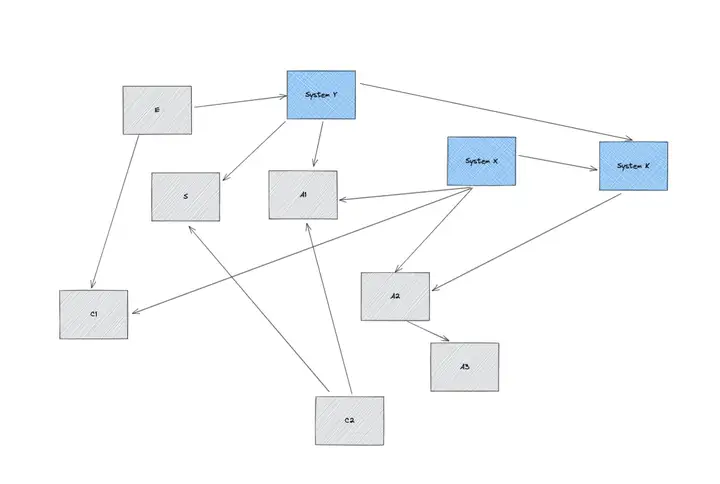 - 原本方案只需要直接改动系统 A,但由于负责系统 A 的团队并没有解决该问题的动力,其他人不得不绕道去修改系统 B,C,D 来解决该问题。