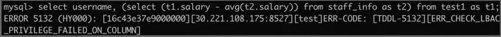 - 当SQL查询涉及到当前用户无法读取的列时,SQL执行会失败;