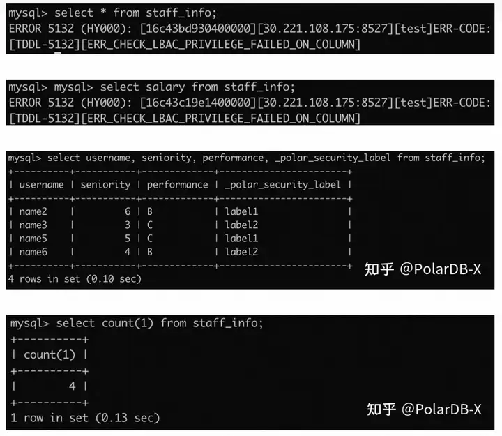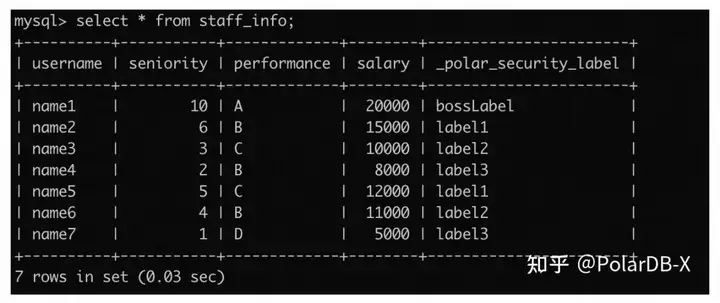 - 可以读取的列:username, seniority, performance, _polar_security_label