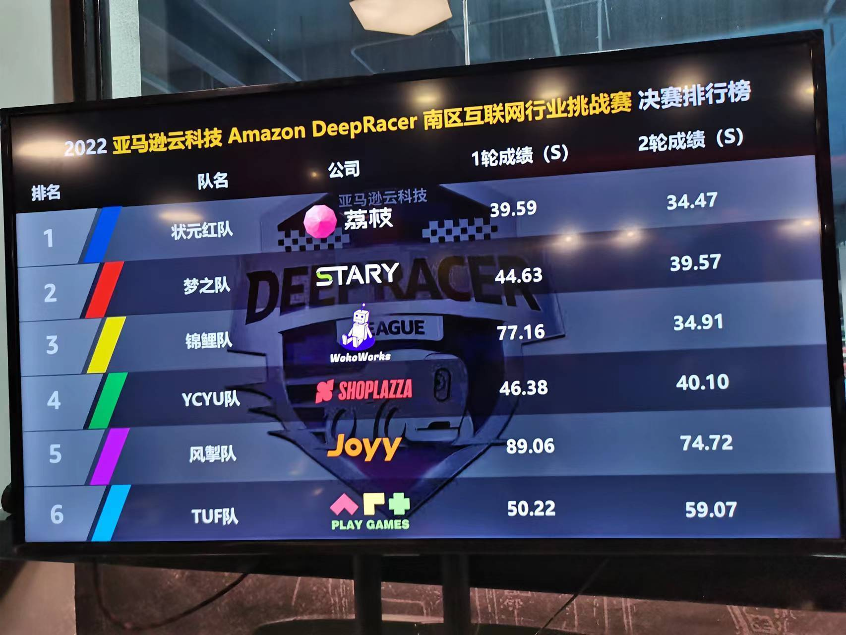荔枝状元红战队获得2022DeepRacer互联网行业南区赛冠军