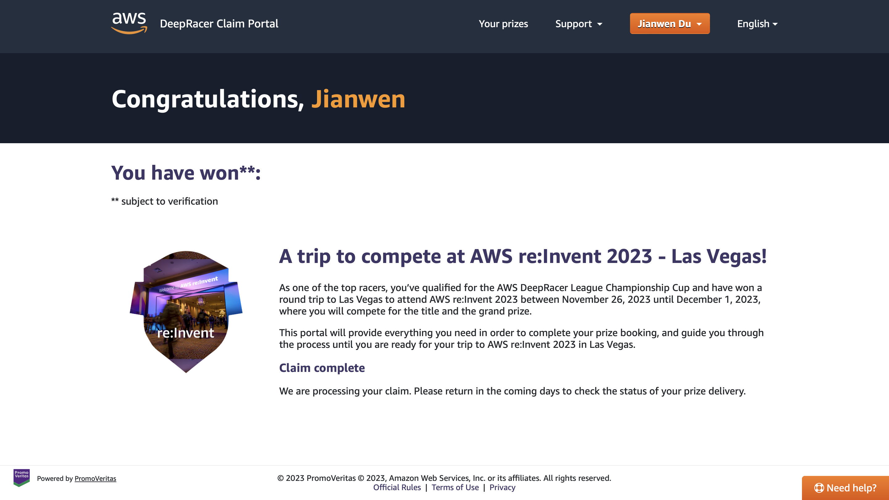 杜键文到Amazon DeepRacer 全球自动驾驶赛车锦标赛的入场券,年底前往拉斯维加斯挑战世界顶尖高手。