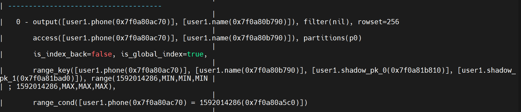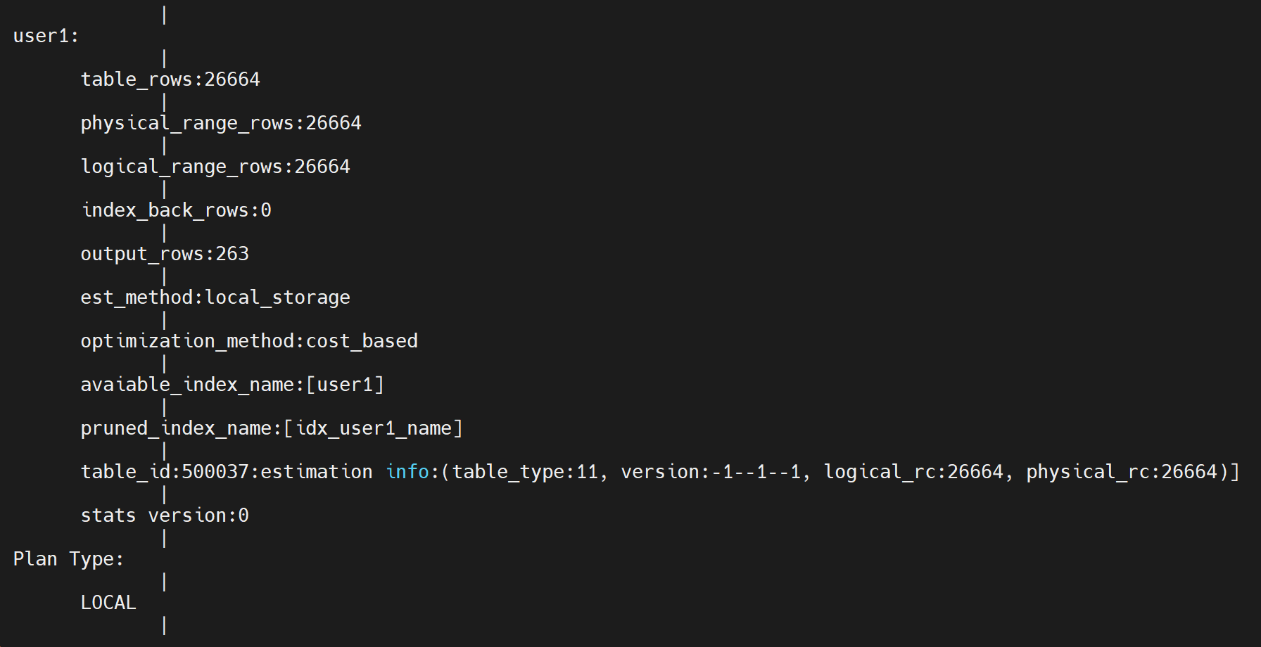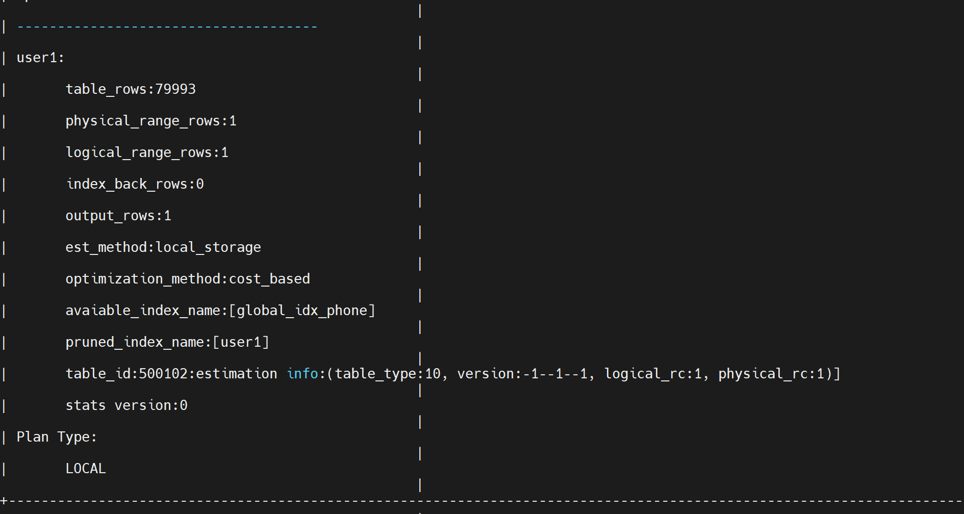 - Plan type :有 3 个选项,最优是 LOCAL 对应本地调用,REMOTE 对应远程调用,最坏情况是 DISTRIBUTED。