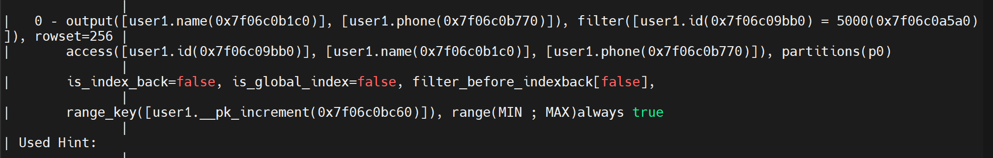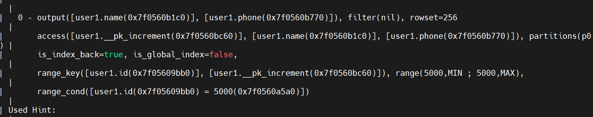 obclient [tpch]> explain extended select name, phone from user1 where id= 5000;