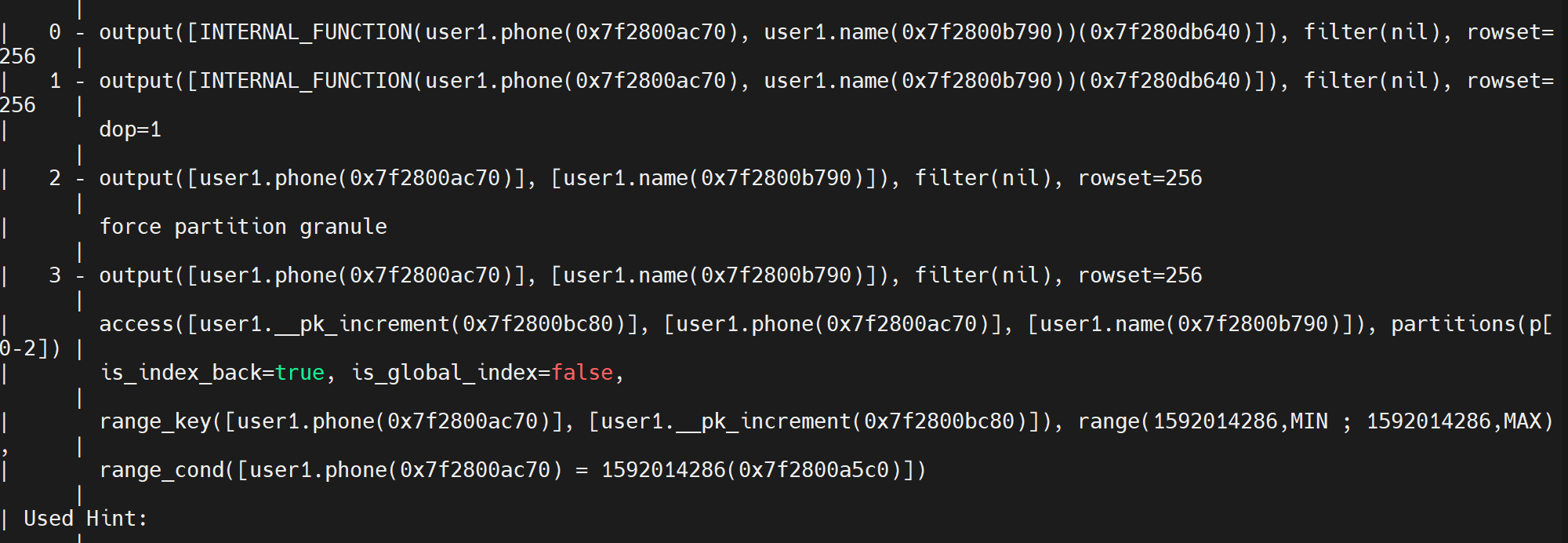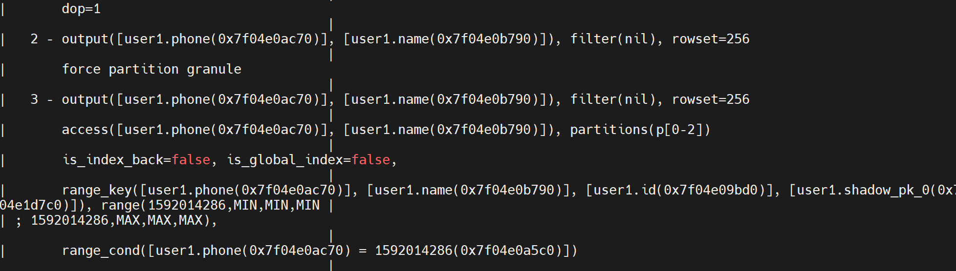 obclient [tpch]> explain extended select phone ,name from user1 where phone = 1592014286;
