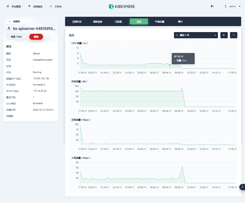 kubesphere-controls-system kubectl-admin-5656cd6dfc-n5k4c 1/1 Running 1 (30m ago) 4d 10.233.102.124 ks-master-2 <none> <none>