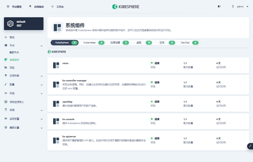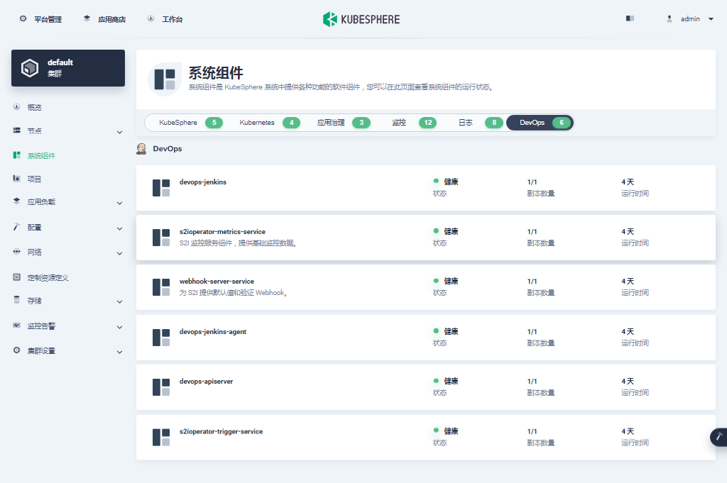 本文的不完全测试结论: KubeSphere 和 Kubernetes 基本功能可用,Devops 功能部分可用,主要问题在构建镜像时 Maven 容器启动异常,其他插件功能未做验证。