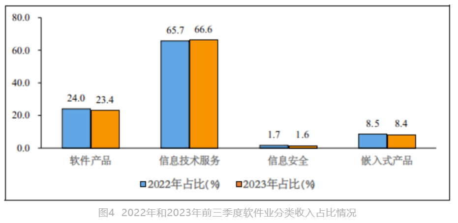 软件产品收入平稳增长。前三季度,软件产品收入20465亿元,同比增长10.3%,占全行业收入的比重为23.4%。其中,工业软件产品收入1976亿元,同比增长11.8%。