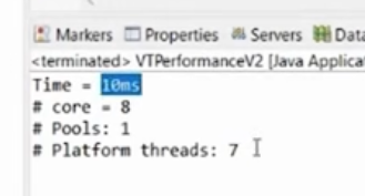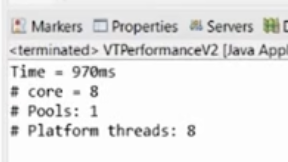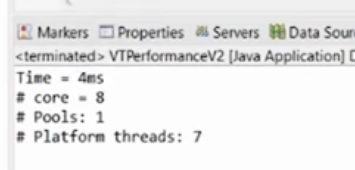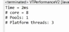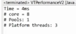对于 5 个虚拟线程,它使用 3 个平台线程并花费 2 毫秒。