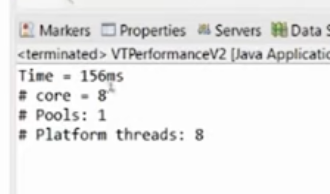 现在它使用 8 个平台线程,花费了 156 毫秒。