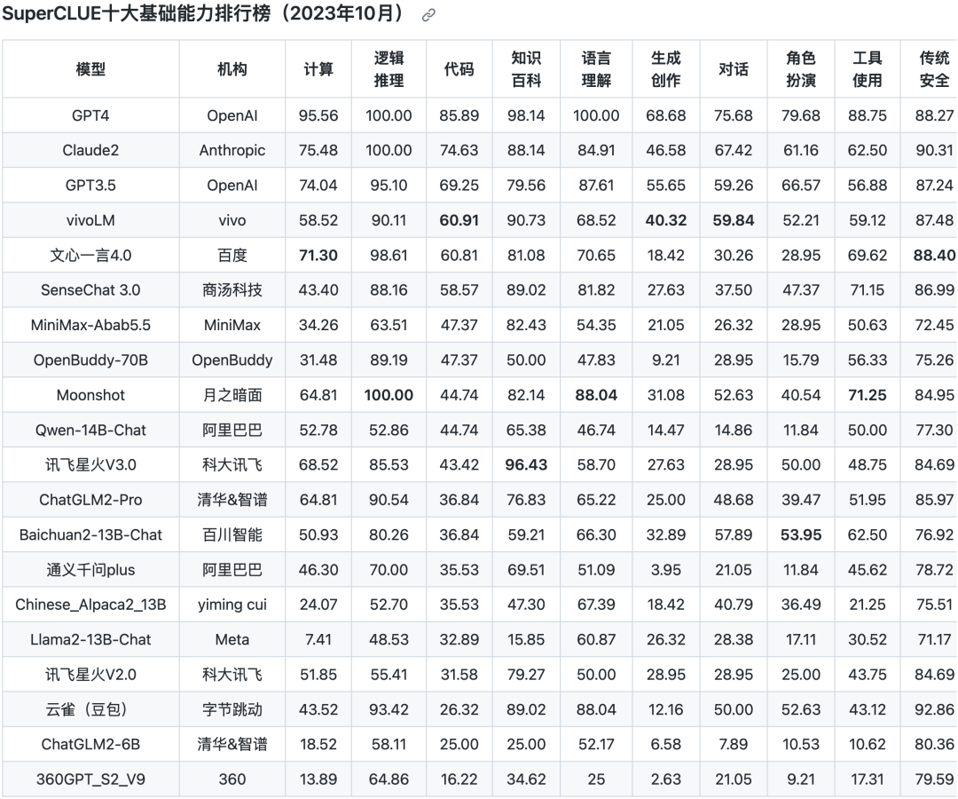 SuperCLUE 10 月榜单:vivo 自研大模型位列国内第一
