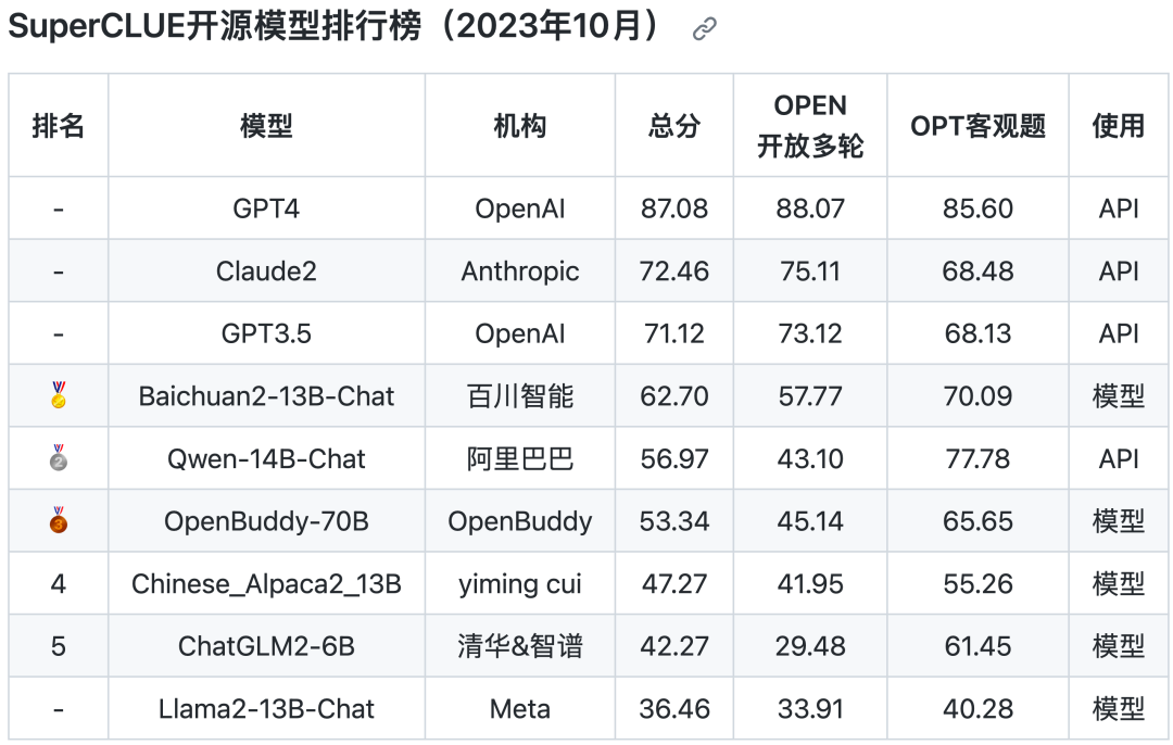 - 国内第一梯队大模型经过11个月的努力,已经与GPT3.5极为接近。但与GPT4的距离依然巨大,尚未发现有对标和媲美GPT4的迹象。