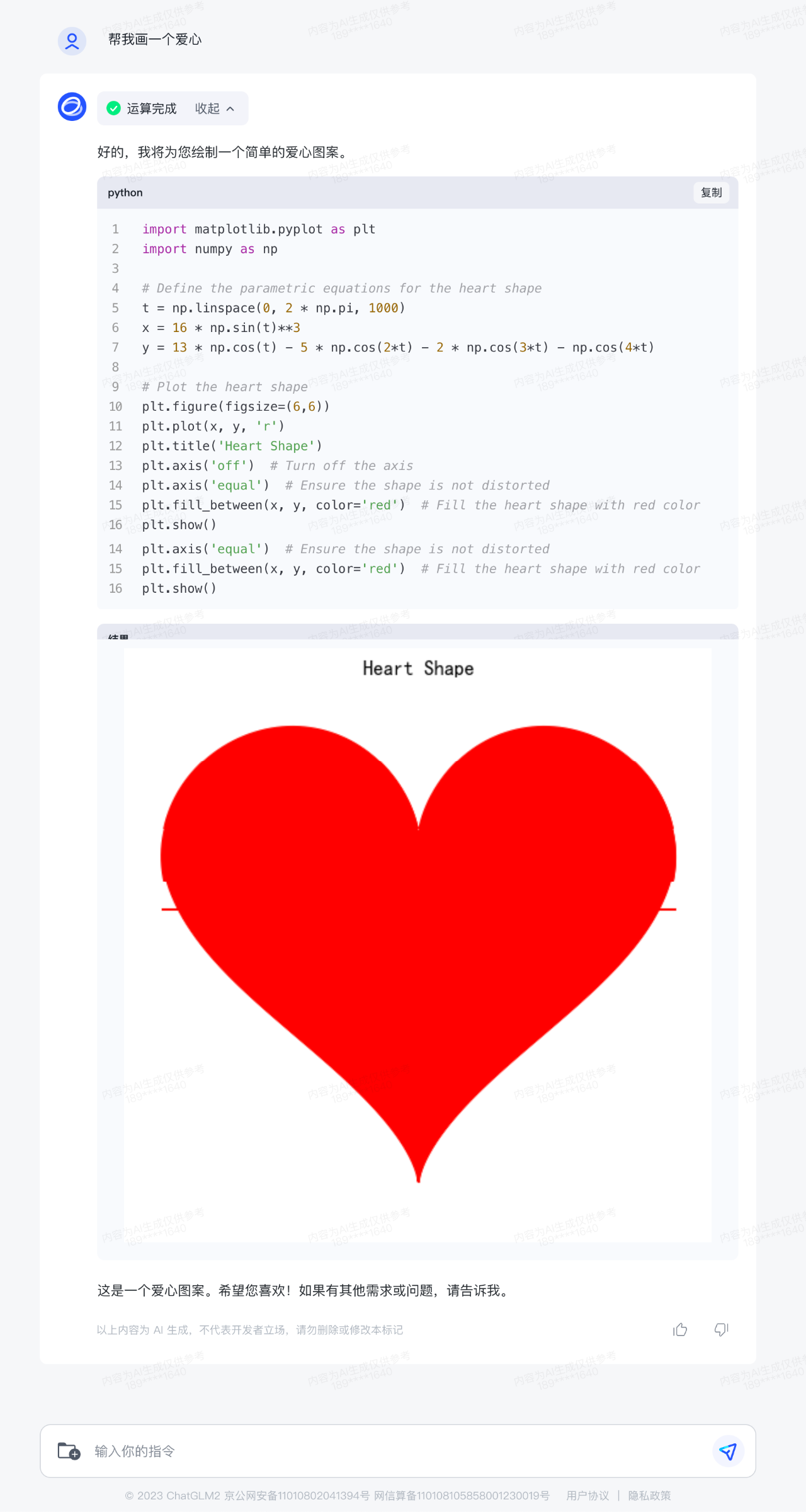 在这一能力的加持下,ChatGLM3可支持图像处理、数学计算、数据分析等使用场景。以下分别为: