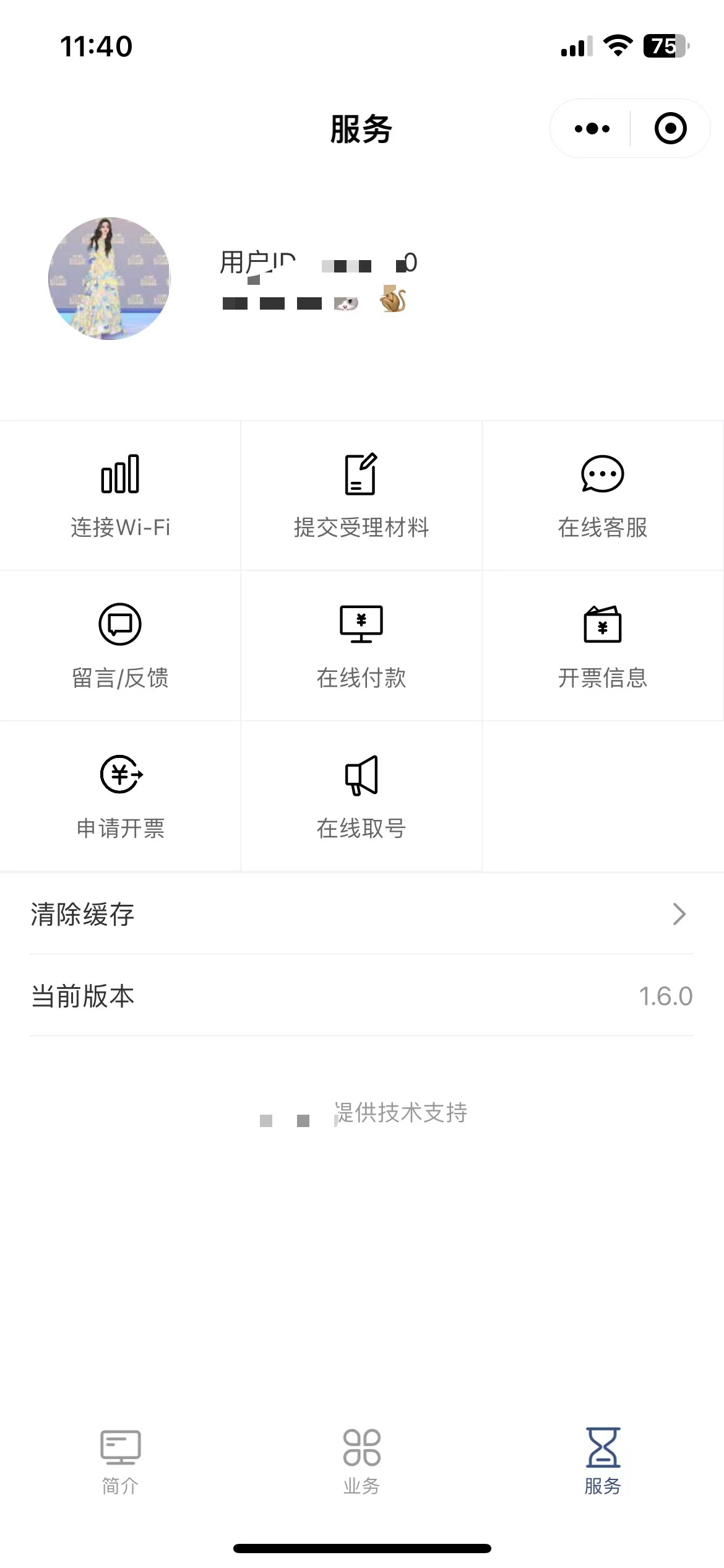 在企业“服务”栏中,可操作的服务功能也是多样化的,如:在线客服、留言/反馈、在线付款、开票功能以及在线取号等。